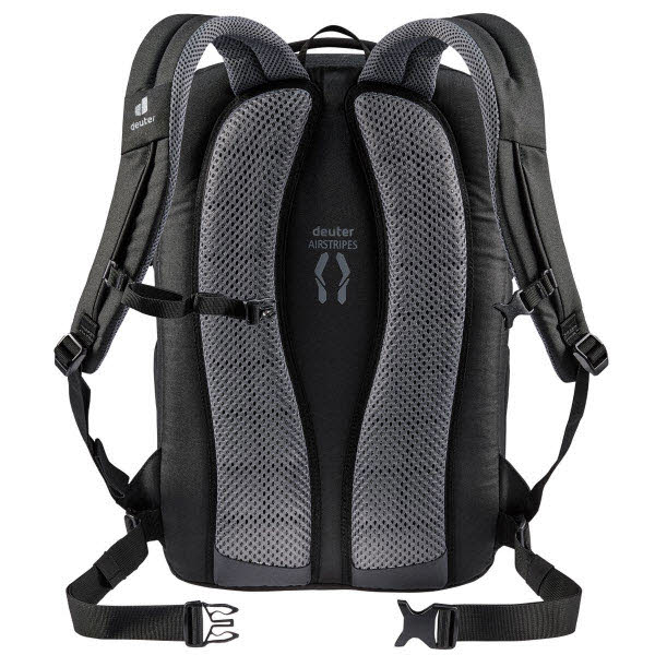 Um unterwegs möglichst komfortabel und ruckelfrei zu sitzen, hat Deuter den Giga mit flexiblen Netz-Hüftflossen und dem hervorragend belüfteten Airstripes-Rückensystem versehen. Durch seine vergleichsweise schmale und hohe Form trägt man das Rucksackgewicht stets angenehm nah am Körper.