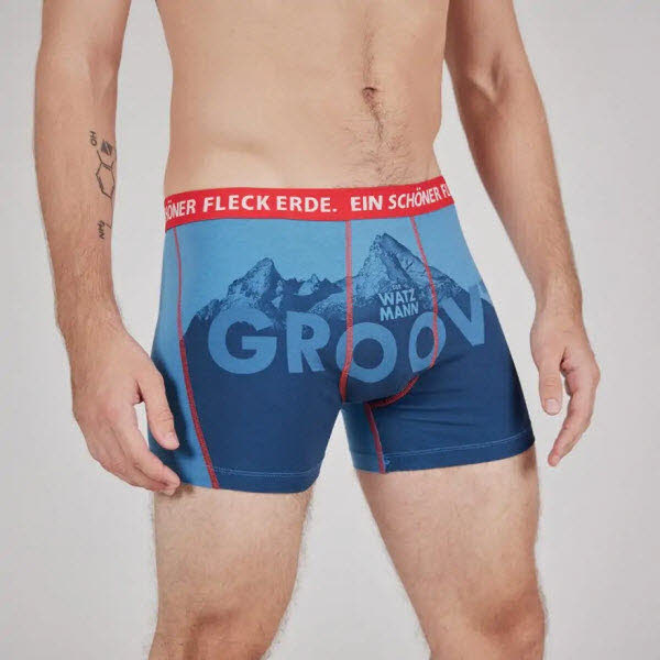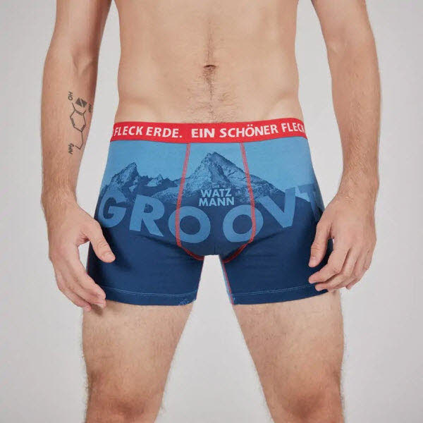 Unsere Boxershorts DER WATZMANN GROOVT wird aus handgepflückter Bio Baumwolle gefertigt und ist sehr anschmiegsam. Du wirst sehen, sie entlockt dir die lautesten Juchizer.