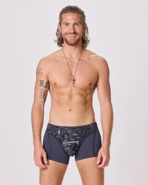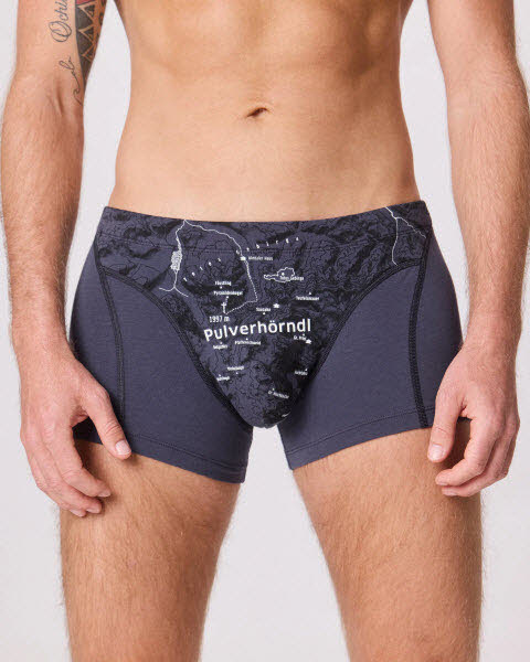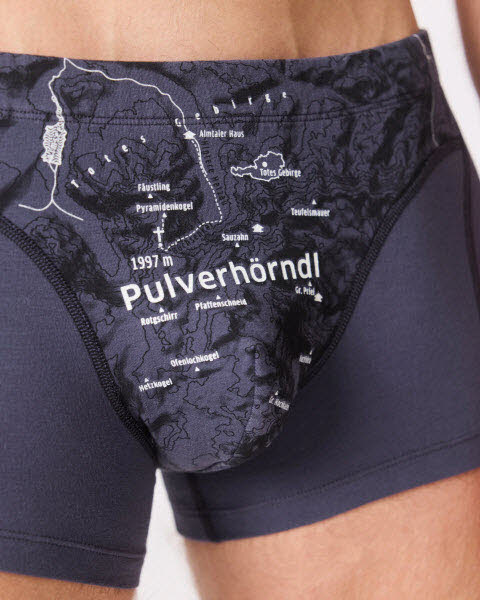 Drin ist was, draufsteht. Diese Unterhose begleitet dich mit ordentlich Pulver all deinen Abenteuern. Der sportliche Schnitt garantiert Bewegungsfreiheit, während die Landkarte dir den Weg zu neuen Gipfeln zeigt.