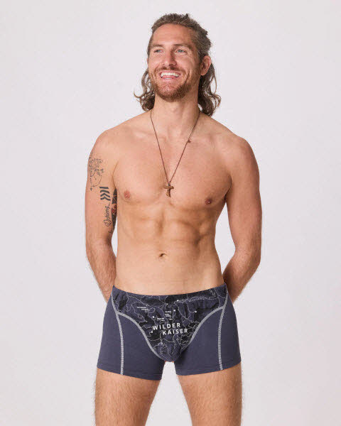 Drin ist, was draufsteht. Die ideale Boxershorts für alle Unternehmungen in den Bergen und darüber hinaus. Der sportliche Schnitt dieser Herren Unterhose sorgt für maximale Bewegungsfreiheit. Die Landkarte auf dem Stoff ist nicht nur schick, sondern hilft dir auch dabei, deinen Weg zum Höhepunkt zu planen. Egal, ob du den kürzesten Weg wählst oder lieber die malerischen Nebenpfade erkundest, in dieser Boxershorts bist du der KAISER.