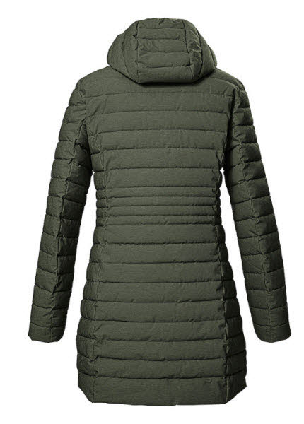 Der Damen Funktionsparka in Daunenoptik von G.I.G.A. DX besticht durch seinen schmalen Schnitt und die figurschmeichelnde Steppung. Der Steppparka ist wasserabweisend und winddicht mit einer 8.000 mm Wassersäule und gleichzeitig atmungsaktiv. Die abzippbare Kapuze und der hohe Stehkragen schützen zusätzlich vor Wind und Regen. Die beiden Seitentaschen sind mit Zippern verschließbar. Der 2-Wege-Reißverschluß lässt sich von oben und unten öffnen und sorgt so für Bewegungsfreiheit. Außerdem ist er mit einem praktischen Kinnschutz versehen.