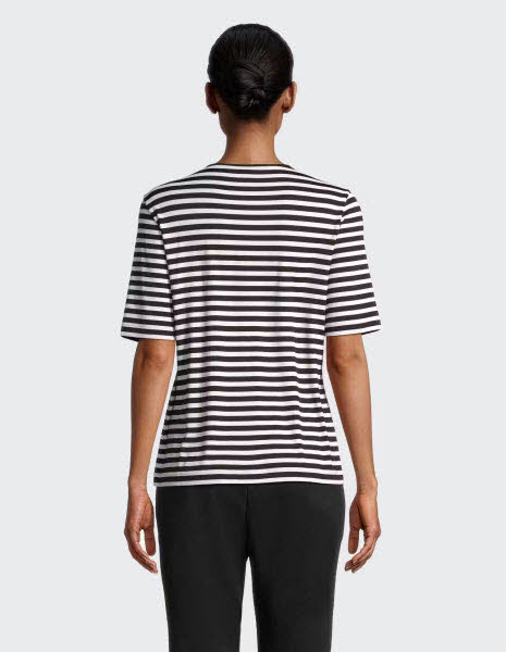 Der sommerliche Style, lässt sich spielend leicht kombinieren und ist ideal auf Reisen sowie zu vielen anderen Gelegenheiten. Der Rundhalsausschnitt ist etwas tiefer, die Passform körpernah und der Kurzarm leicht verlängert. Das sieht nicht nur gut aus, sondern optimiert auch das Tragegefühl. Der Baumwolljersey mit dem weichen Griff verfügt von Natur aus über klimaregulierende Eigenschaften, passend für warme Temperaturen.