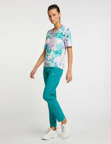 Rundhalsshirt mit tropischem Druckmotiv