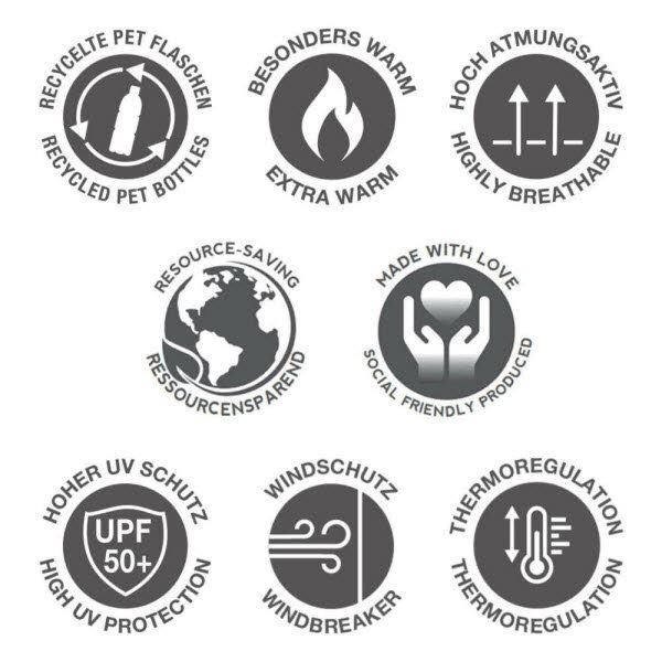 Gut für die Umwelt: das Fleece besteht aus recyceltes Polyester. Dank seiner vielen Anwendungsmöglichkeiten sehr praktisch für unterschiedlichste Outdoor-Aktivitäten einsetzbar. Durch seine antibakterielle Wirkung wird die Entstehung von Geruch und Keimen gehemmt.
