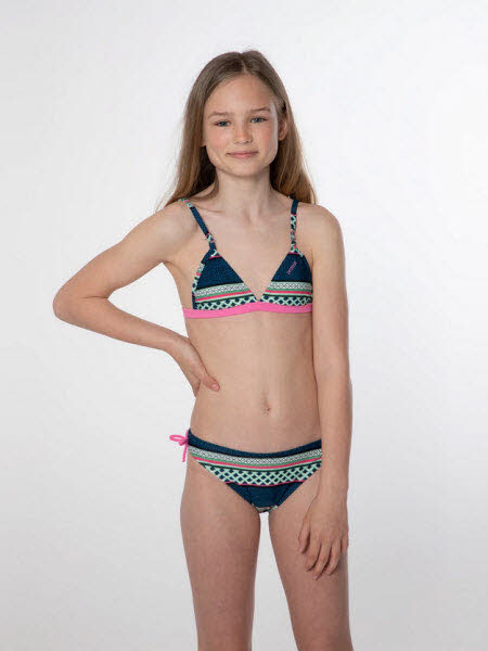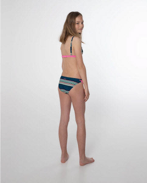 Dieser fantastische Triangel-Bikini ist mit einem Design aus unserer Sommerkollektion bedruckt. Der Bikini hat einfarbige Bündchen. Die Träger sind verstellbar, um perfekten Sitz zu garantieren. Die Hose ist an den Seiten mit Schleifen verziert. Die Größen 140-176 haben herausnehmbare Schaum-Cups. Der Stoff ist außerdem PFC-frei, um die Verwendung dieser Chemikalien und ihre schädliche Wirkung auf die Umwelt zu reduzieren.